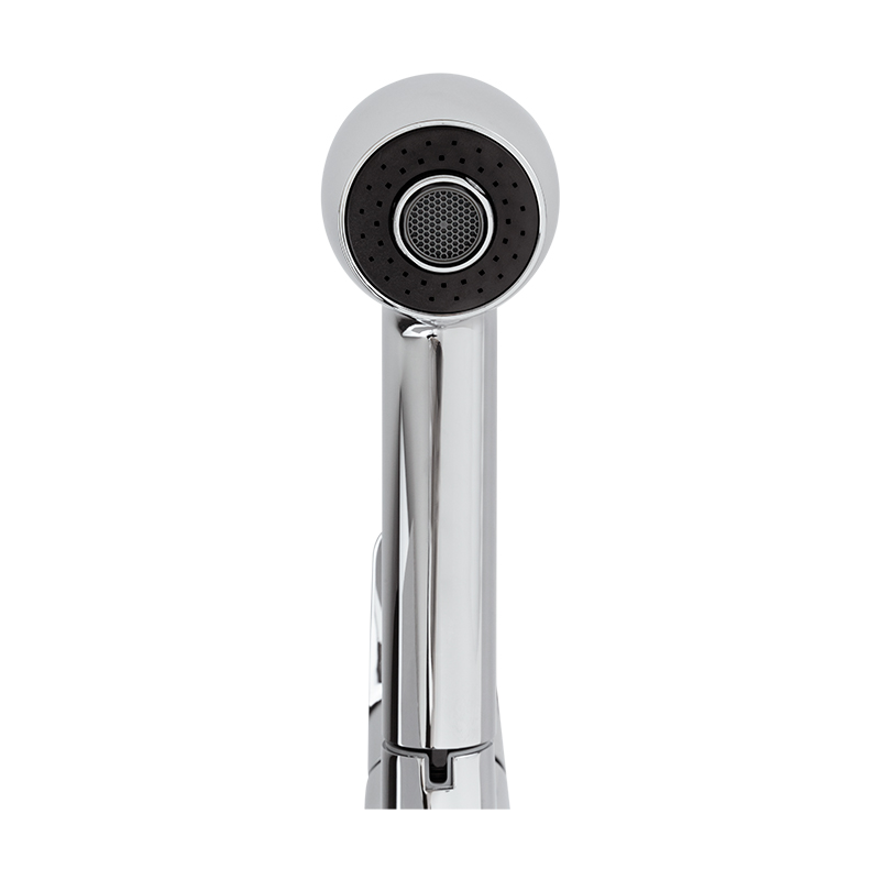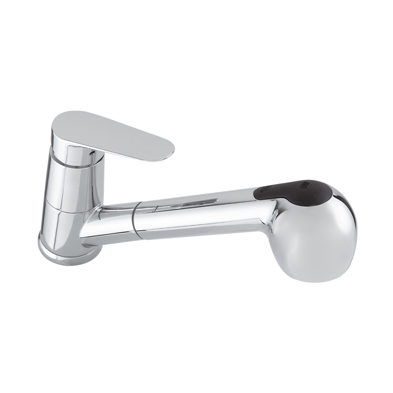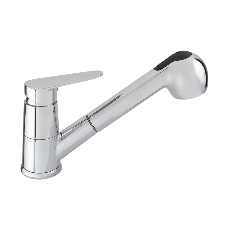 Monomando de latón en acabado cromo, con nariz retráctil y 2 funciones. Funcionamiento en presión baja, media y alta