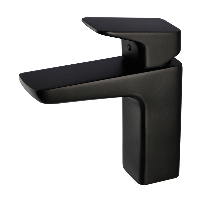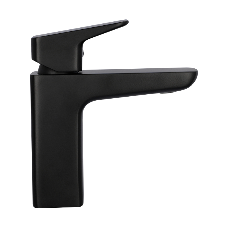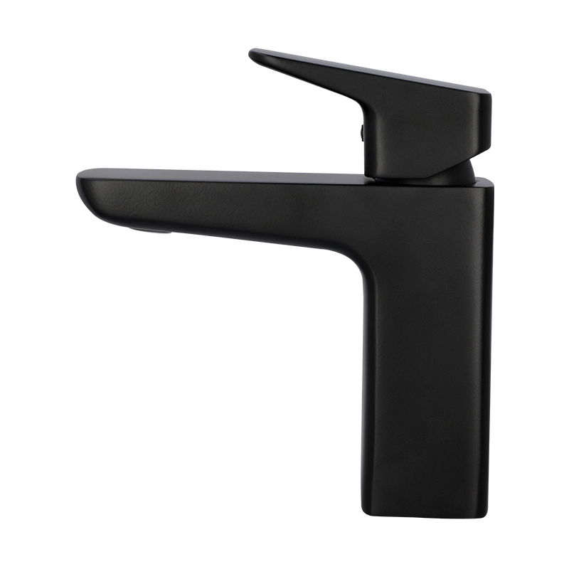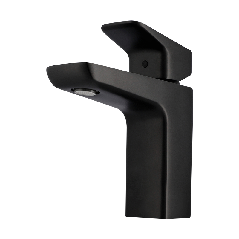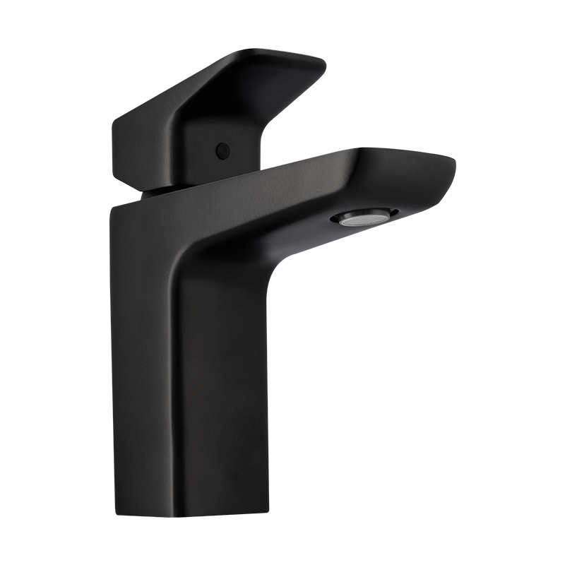Monomando para lavabo de material latón en acabado negro mate. Funcionamiento en presión baja, media y alta. Colección con diseño versátil y trazos fuertes ideal para proyectos arquitectónicos diversos