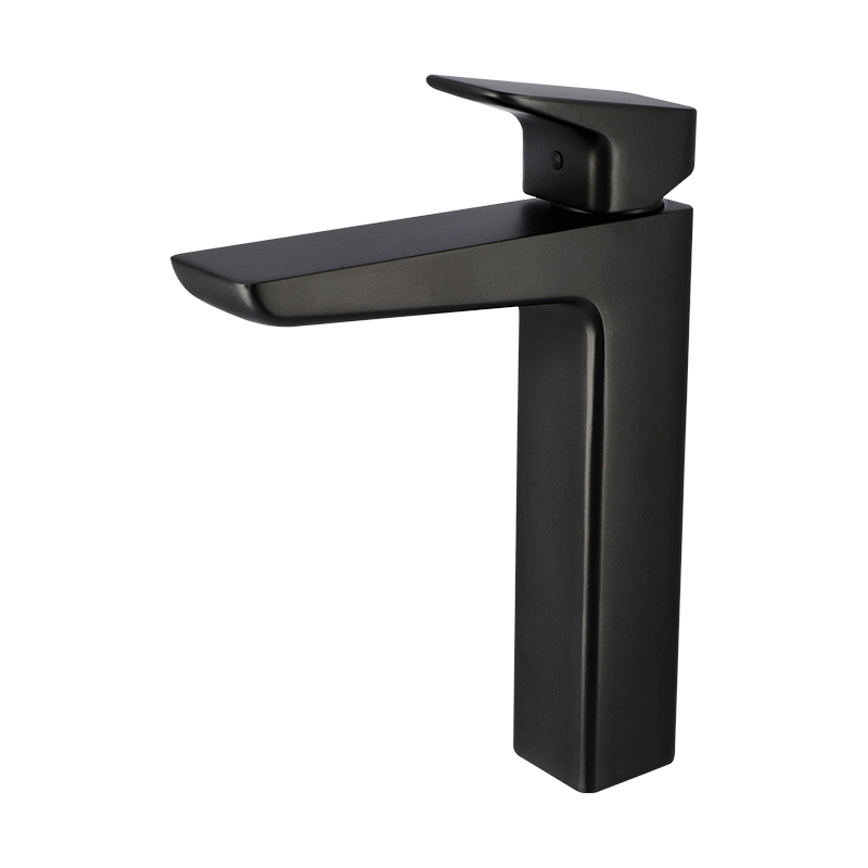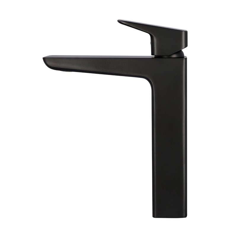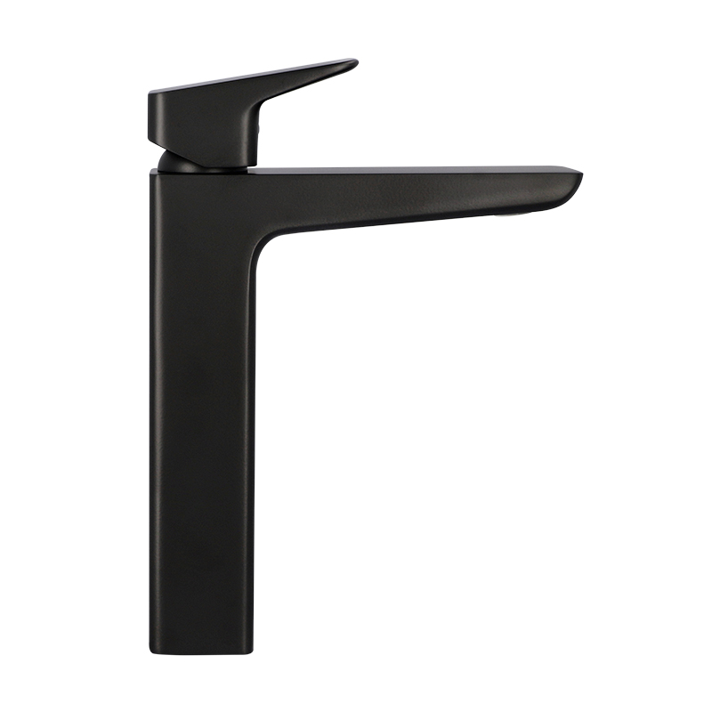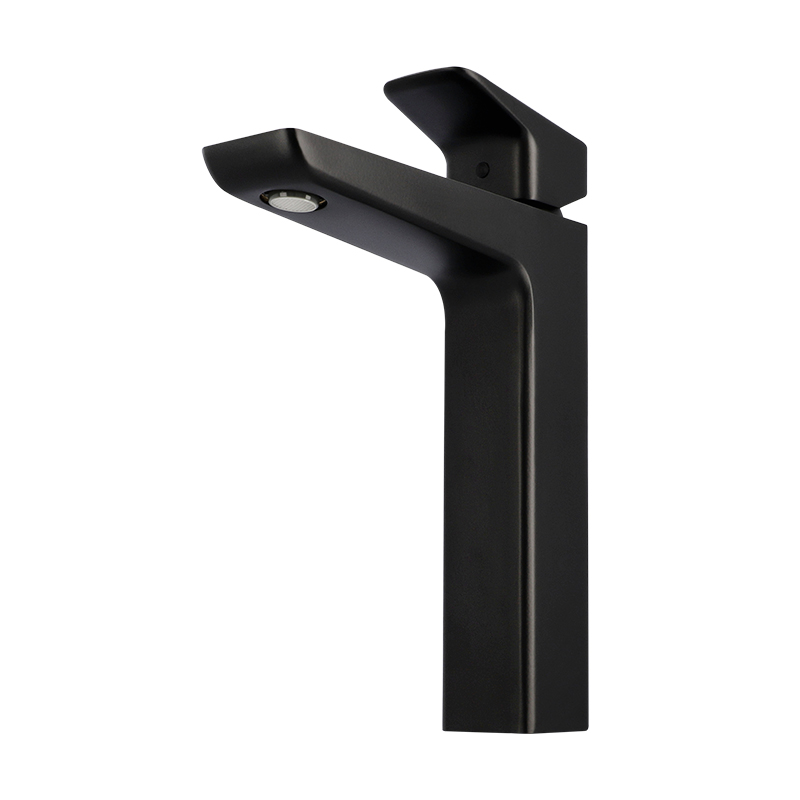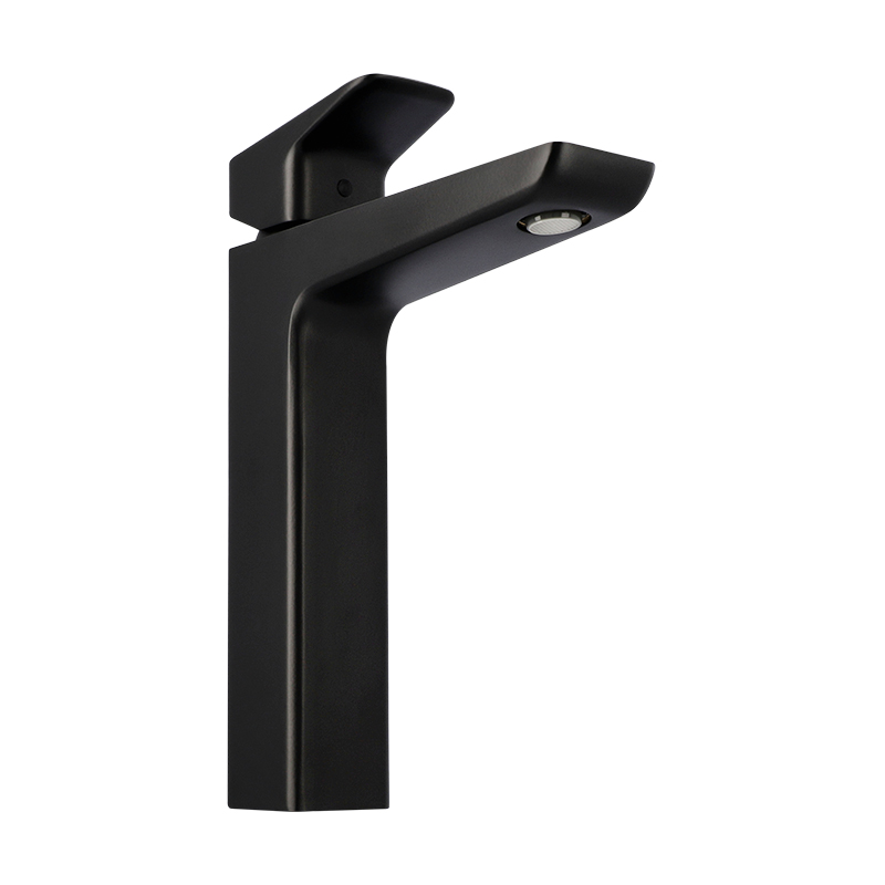 Monomando para lavabo de material latón en acabado negro mate. Funcionamiento en presión baja, media y alta. Colección con diseño versátil y trazos fuertes ideal para proyectos arquitectónicos diversos