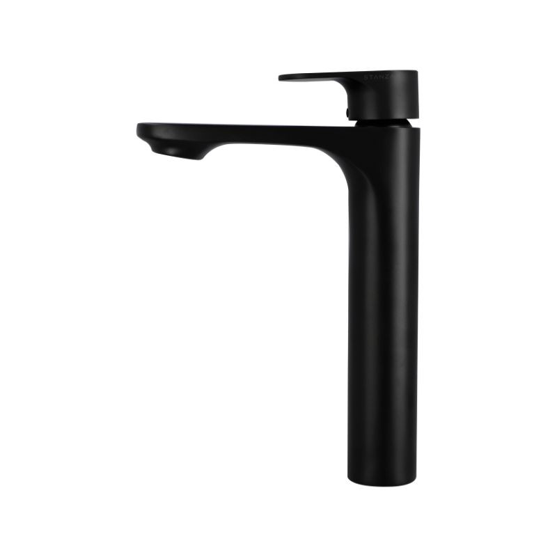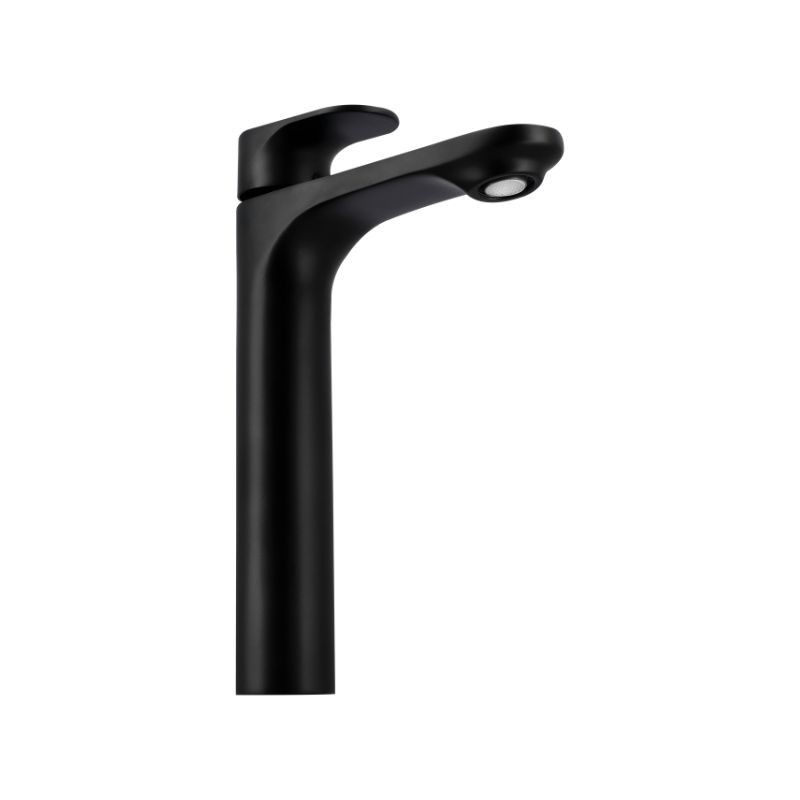 Monomando para lavabo de material latón en acabado Negro Mate. Funcionamiento en presión baja, media y alta. Colección diseñada por Ezequiel Farca