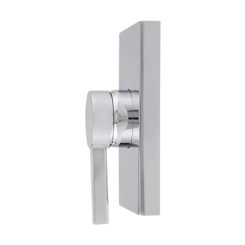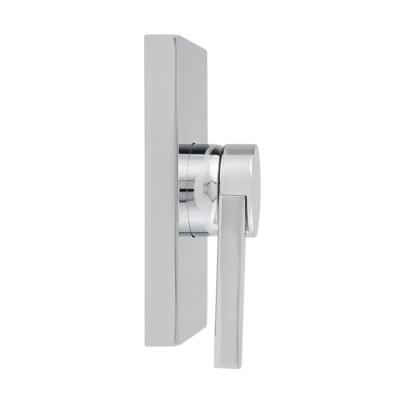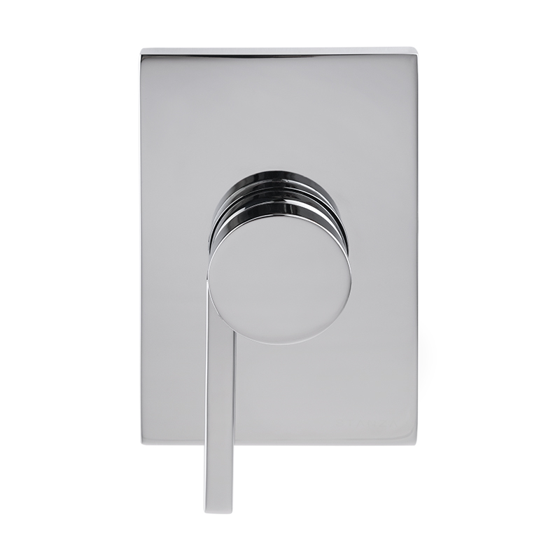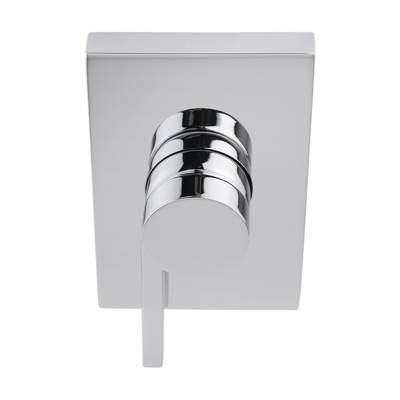 Monomando para regadera sin desviador de material latón en acabado cromo. Funcionamiento en presión media y alta. Colección diseñada por Ezequiel Farca