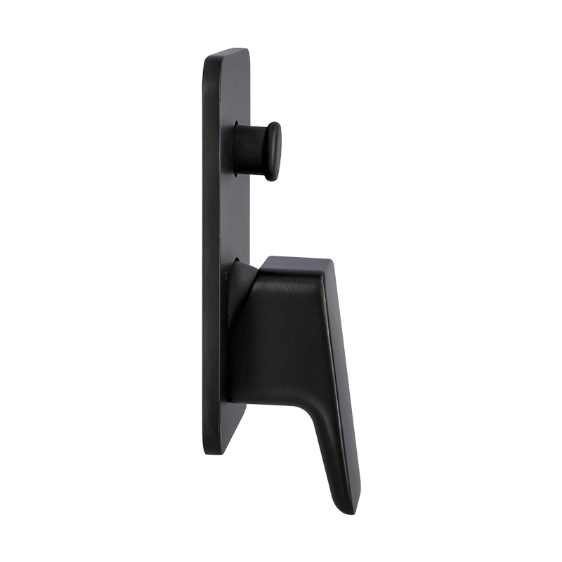 Monomando para regadera con desviador de material latón en acabado negro mate. Funcionamiento en presión baja, media y alta. Colección con diseño versátil y trazos fuertes ideal para proyectos arquitectónicos diversos