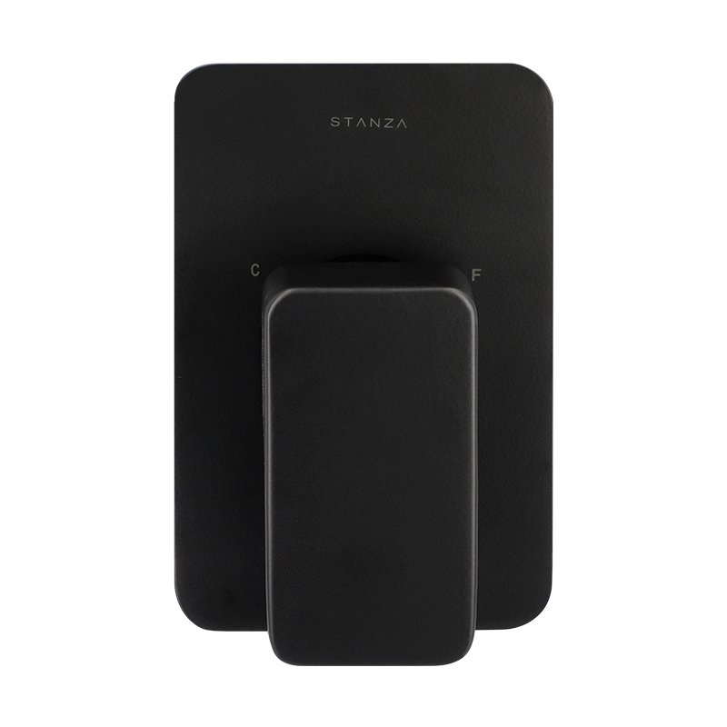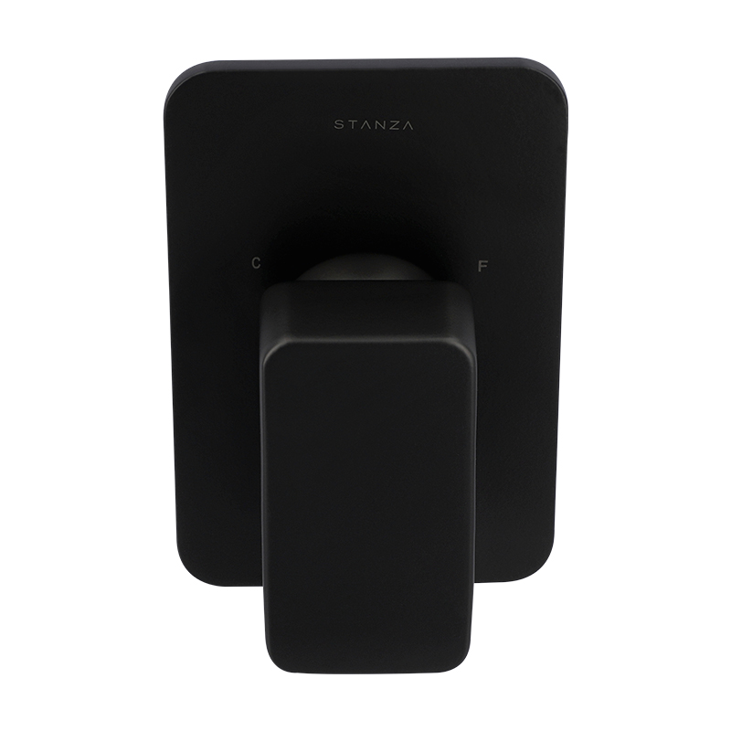 Monomando para regadera sin desviador de material latón en acabado negro mate. Funcionamiento en presión baja, media y alta. Colección con diseño versátil y trazos fuertes ideal para proyectos arquitectónicos diversos