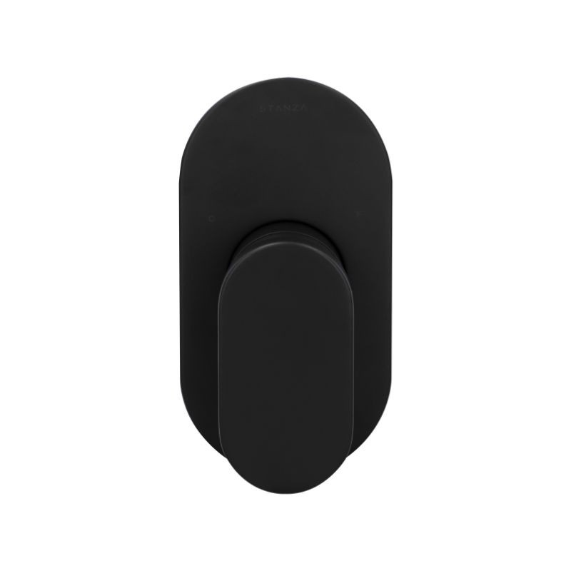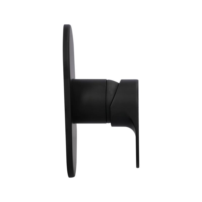 Monomando para regadera sin desviador de material latón en acabado negro mate. Funcionamiento en presión baja, media y alta. Colección diseñada por Ezequiel Farca
