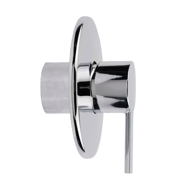 Monomando para regadera sin desviador de material latón en acabado cromo. Funcionamiento en presión baja, media y alta. Colección italiana de formas curvas y elementos cilíndricos