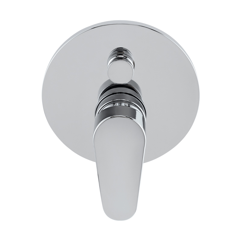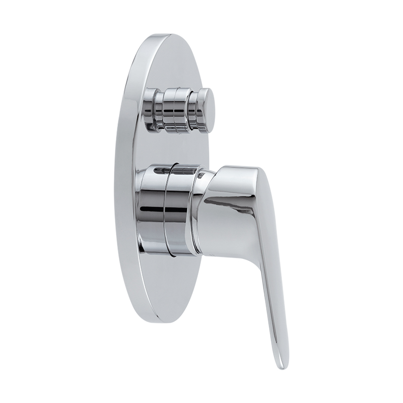 Monomando para regadera con desviador de material latón en acabado cromo. Funcionamiento en presión baja, media y alta. Colección de diseño italiano