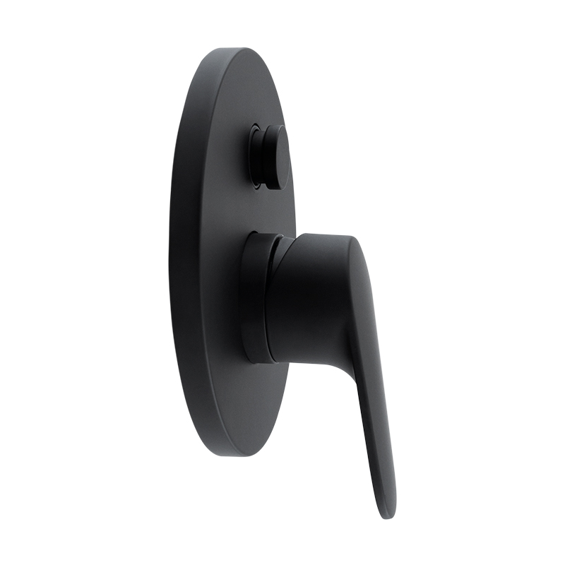 Monomando para regadera con desviador de material latón en acabado negro mate. Funcionamiento en presión baja, media y alta. Colección de diseño italiano