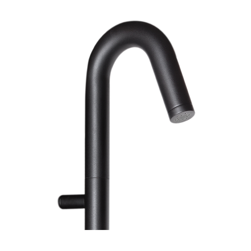 Columna de ducha con diseño vanguardista de material latón en acabado negro mate. Funcionamiento en presión media y alta. Colección italiana, diseñada por Ludovica y Roberto Palomba
