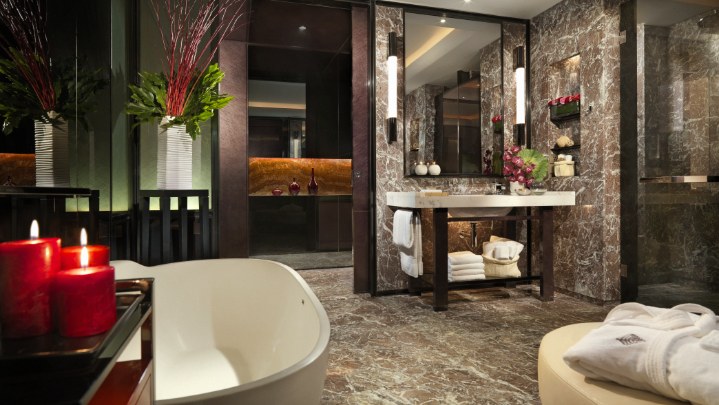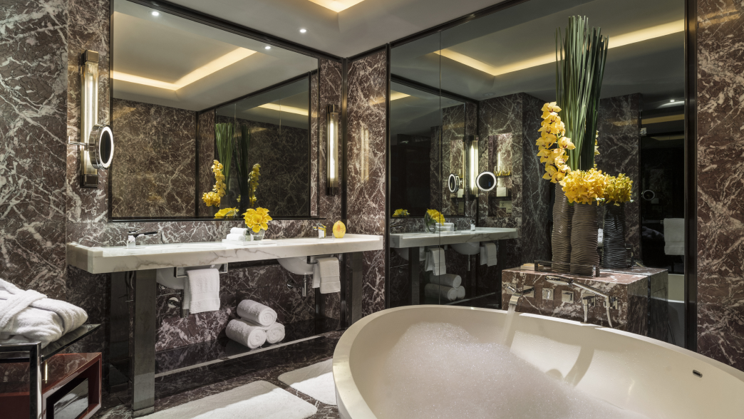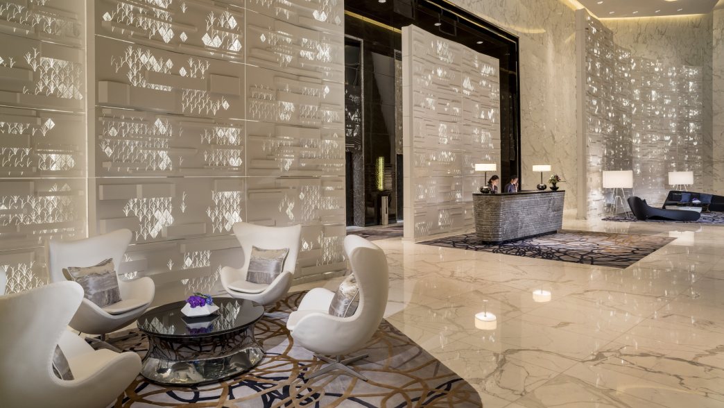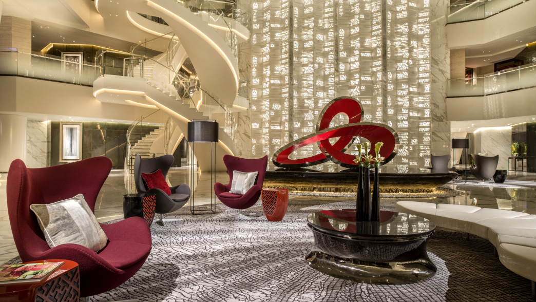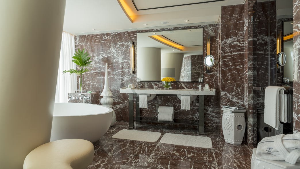 Arquitectónicamente espectacular, el hotel esta conformado por una torre triangular de 30 pisos de altura. El concepto interior estuvo a cargo de HBA los cuales se dieron a la tarea de desafiar los limites del diseño y transformar el interior clásico en algo ultramoderno y elegante que garantizara una experiencia excepcional para los huéspedes. Uno de los desafíos de diseño más grande fue combinar los interiores con las complejas columnas estructurales que aparecen en todos los espacios públicos y las 104 habitaciones del hotel, por lo que cada planta tiene un estilo especial, la única constante en los interiores de las habitaciones son las salas de baños, en donde la colección SOFT es protagonista.