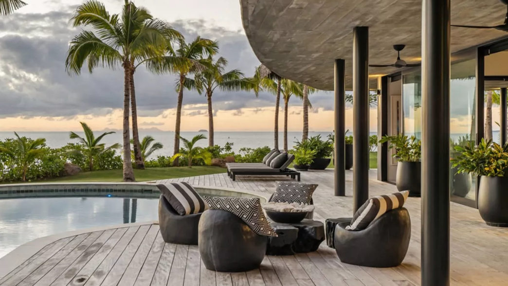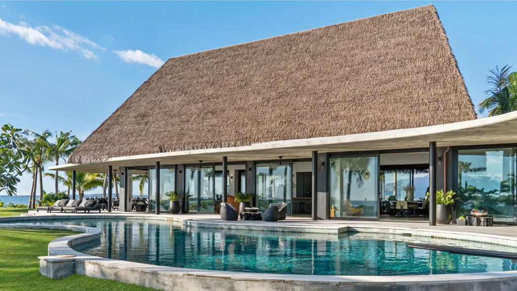 Los altos techos de paja y los techos abovedados de este recinto rinden homenaje a las casas indígenas de Fiji conocidas como "bure". Las puertas de cristal desembocan directamente a las terrazas y los jardines tropicales que rodean la villa y ofrecen impresionantes vistas al mar, desde el amanecer hasta el atardecer desde todas las habitaciones. Elegantemente diseñado para reflejar la armonía del paisaje de Fiji con características de lujo contemporáneas, este retiro privado tiene seis dormitorios y ocho baños, una sala de estar con cocina de chef, una sala multimedia y un estudio, además de la piscina y el jardín.