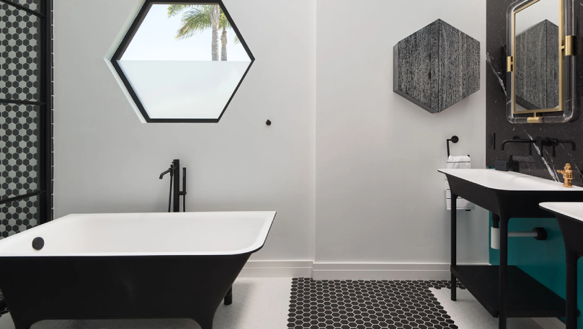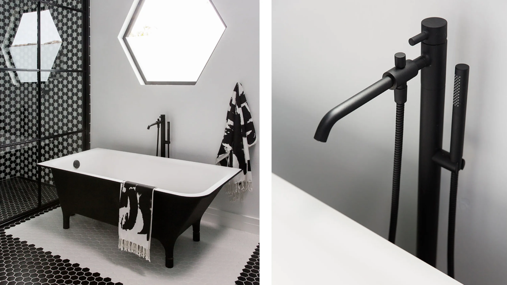 Su diseño moderno mejora las características distintivas de este edificio de planta abierta. Los muebles han sido elegidos por su forma y función, prestando atención a cada detalle. En el baño principal, los arquitectos han jugado con el blanco y el negro, eligiendo la bañera y los lavabos de la colección MORPHING, combinados con los mezcladores PAN, en un acabado negro.